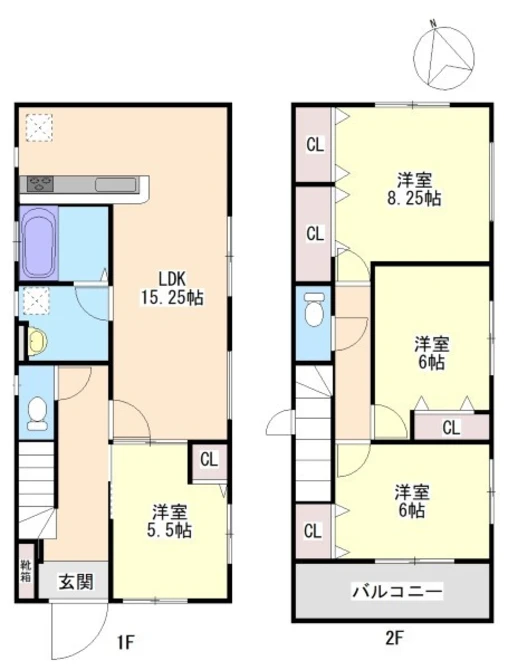 建物面積99.36㎡ (30.1坪)バルコニー南向き